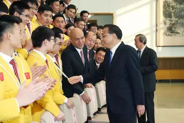 李克强和身穿国家队服、胸挂金牌的宁显海等选手亲切握手,并同全体选手、代表团成员合影留念。他指出,要全面深入贯彻落实党的十九大精神,实施创新驱动发展战略,激发“双创”活力,弘扬工匠精神。