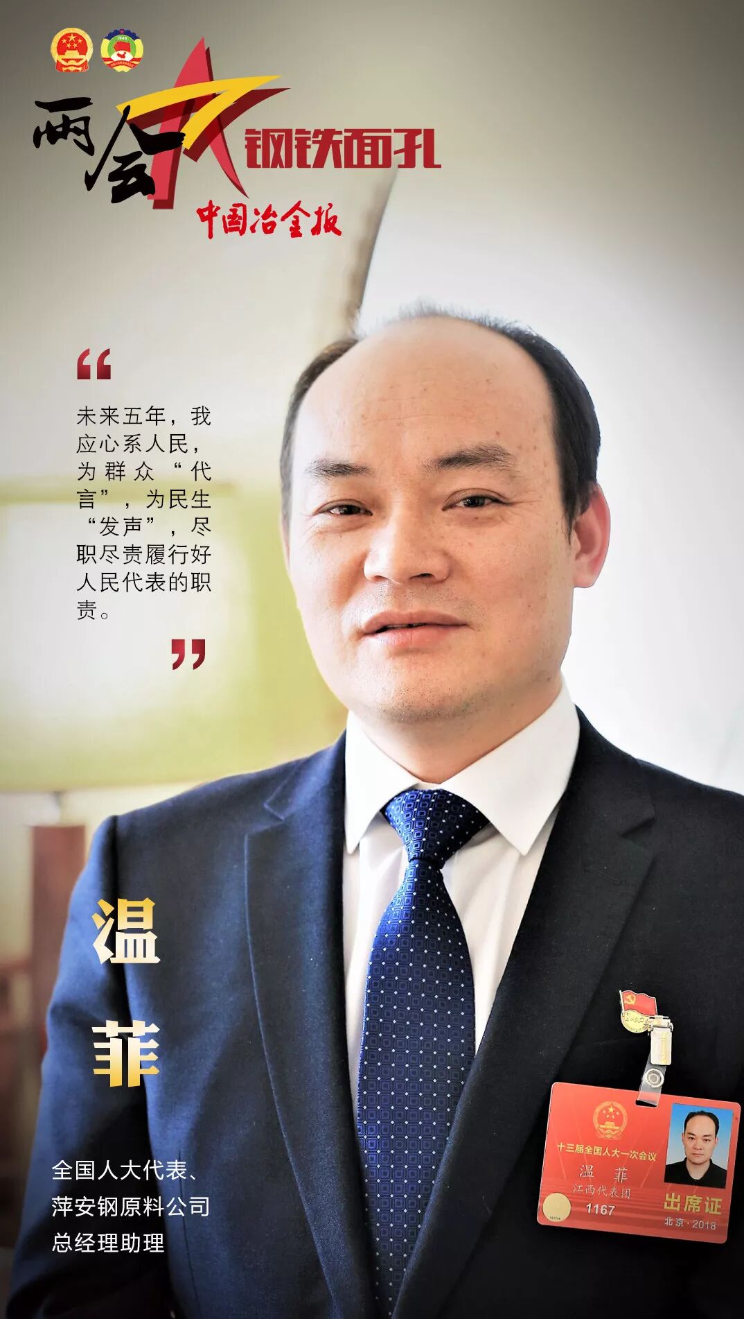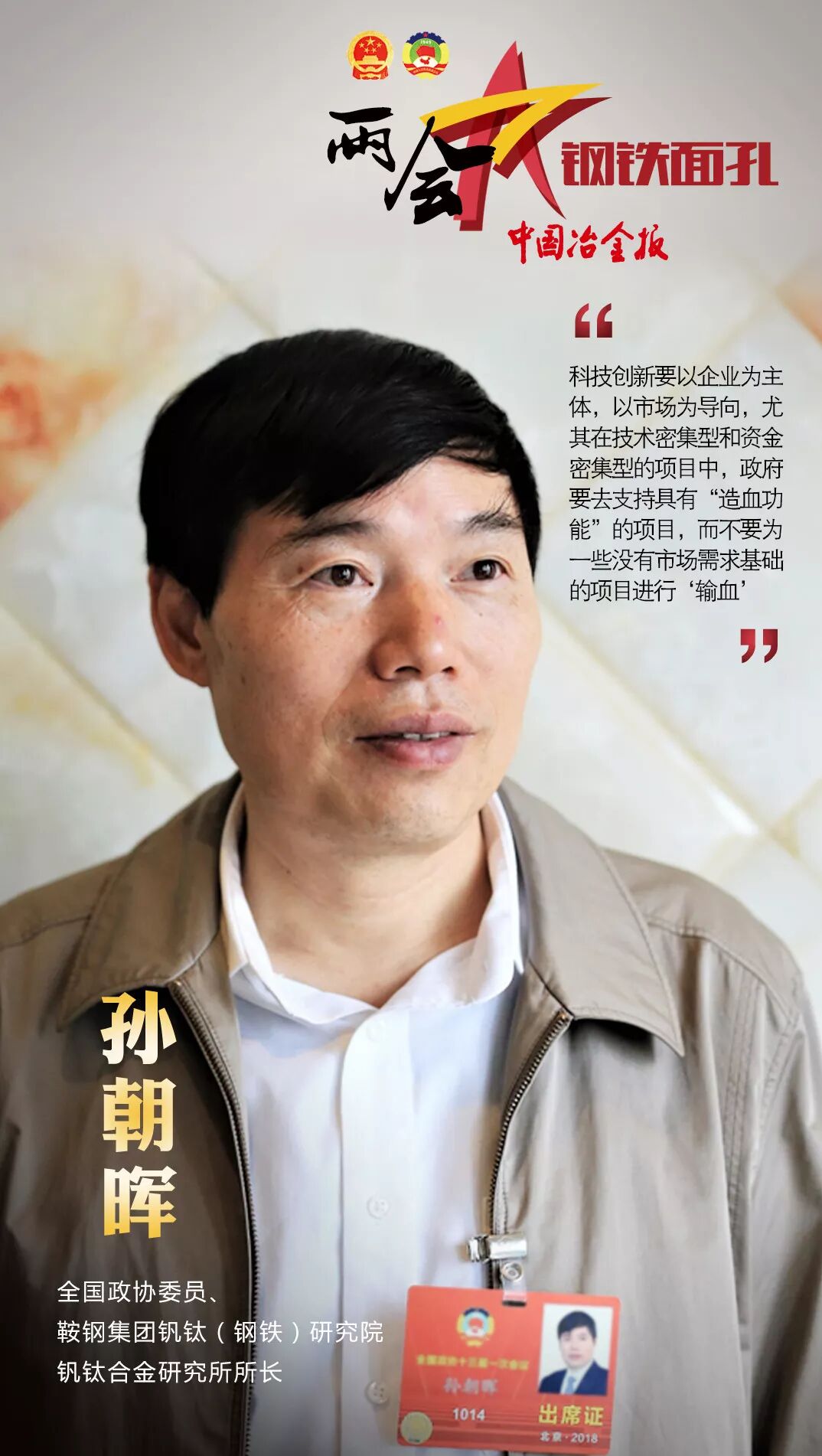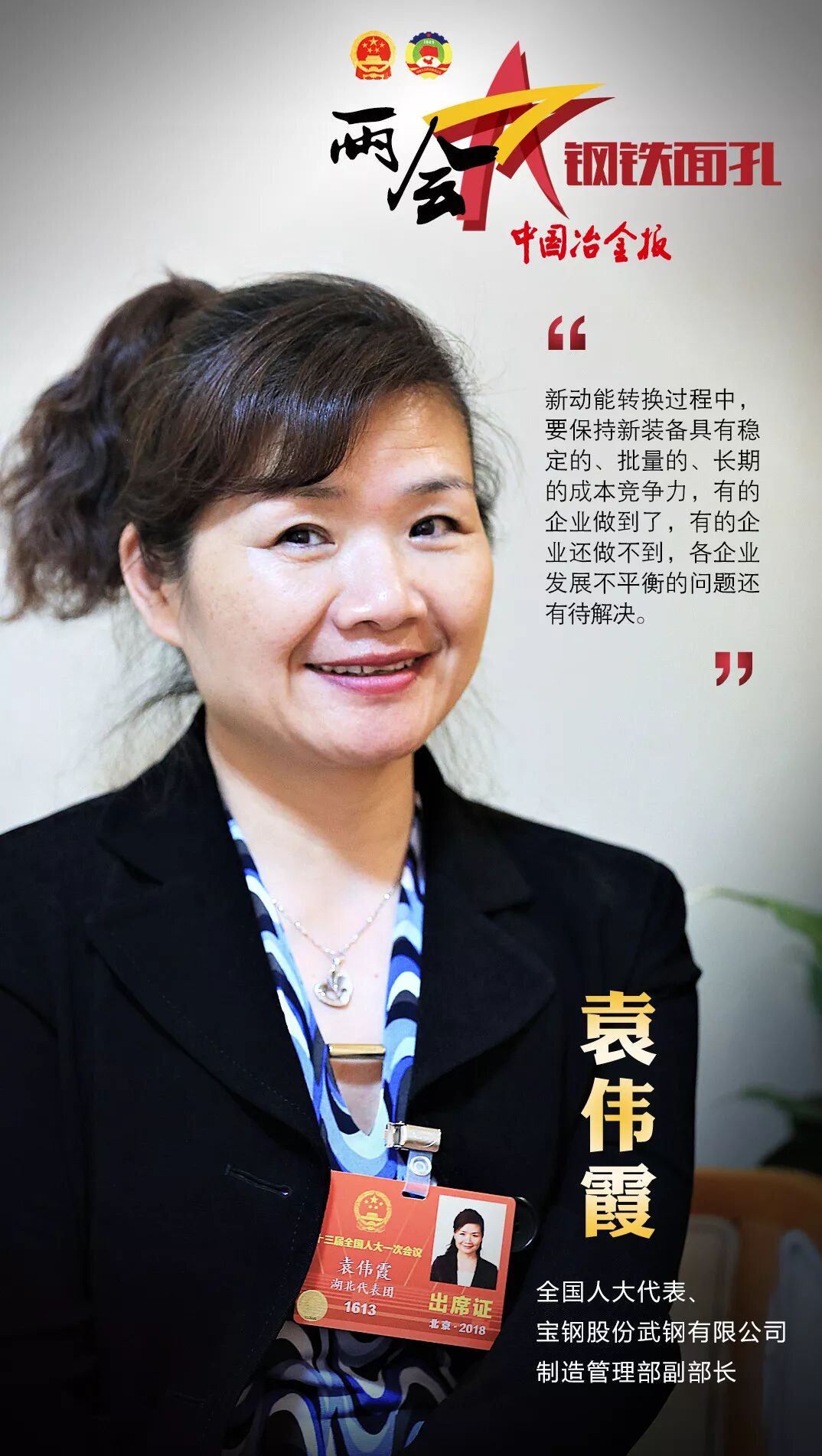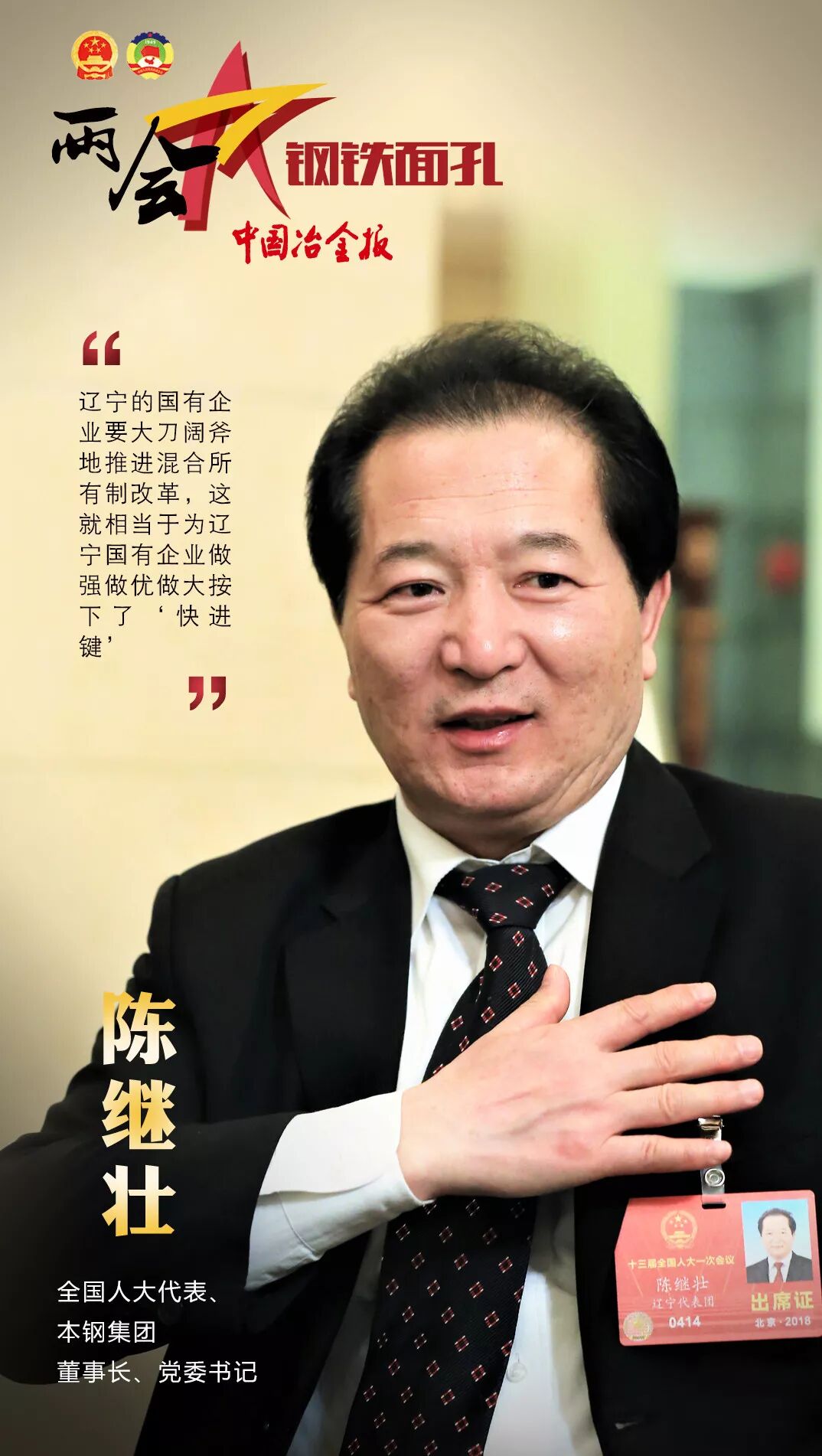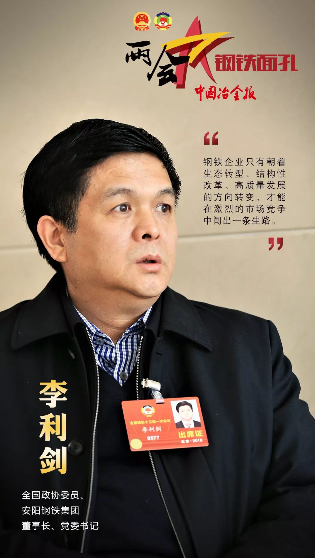 第十三届全国人民代表大会第一次会议和政协第十三届全国委员会第一次会议,已分别于2018年3月5日和3月3日在北京开幕。开幕以来,钢铁行业的人大代表和政协委员们就转型升级、混合所有制改革、安全管理等各个方面谈到了自己的看法。接下来,就让《中国冶金报》、中国钢铁新闻网小编带大家一起,走近两会中的钢铁人吧!